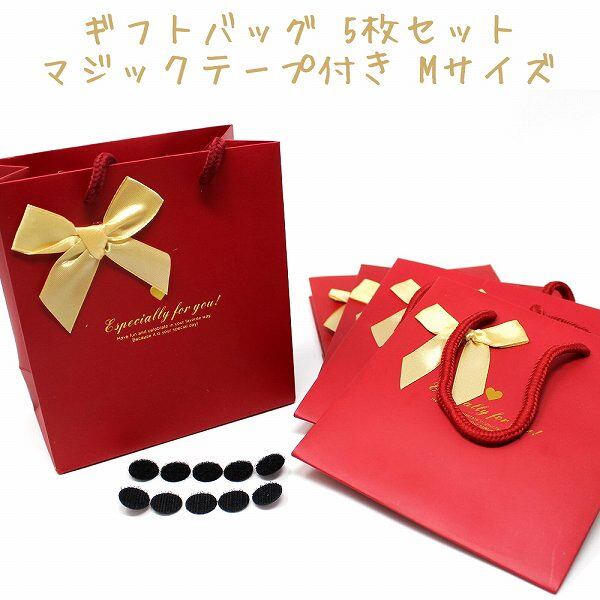 ギフトバッグ リボン レッド 5枚 マジックテープ M ・2109