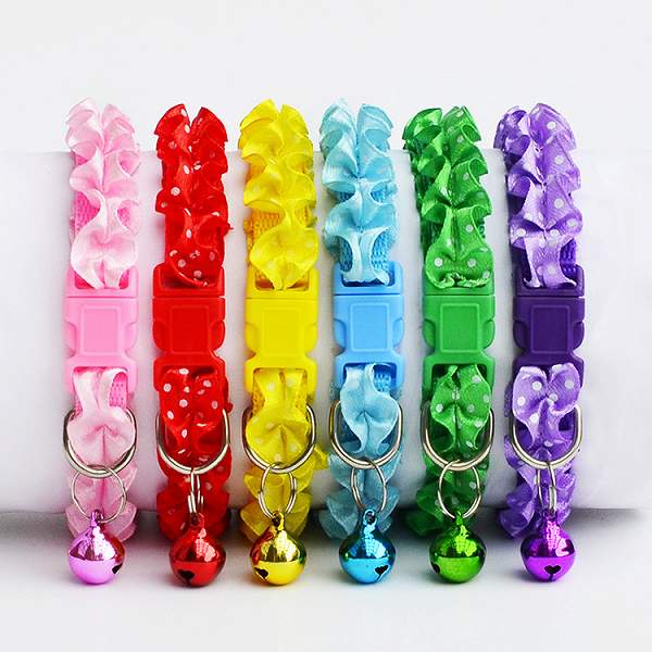 水玉 フリル ペット 首輪 鈴 長さ調節可能 グリーン ・1972