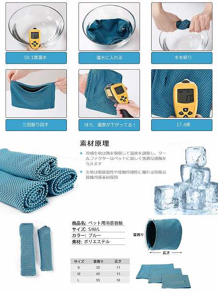 涼しくて快適:非常に軽く柔らかでつけ心地◎。高い通気性で汗や水をすばやく蒸発させることで温度を下げます。サイズはS.M.L の3種類、首には束縛感がなく快適です。