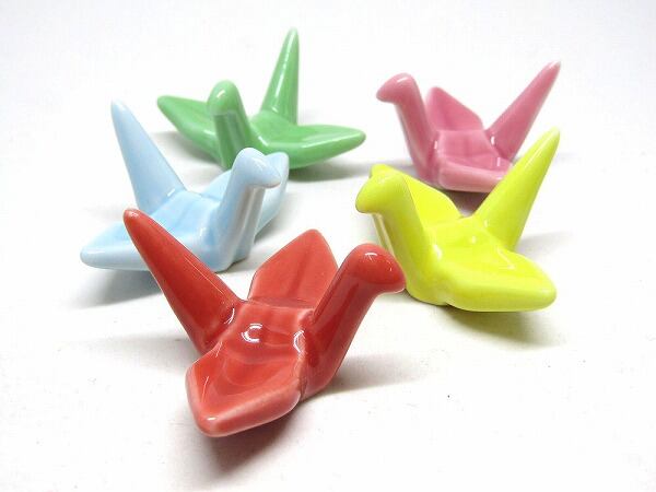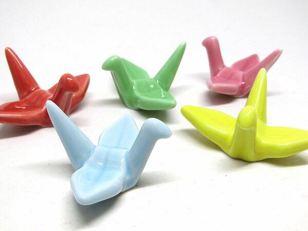 折り鶴 箸置き 5点 セット 赤 青 黄 緑 桃 ・1455
