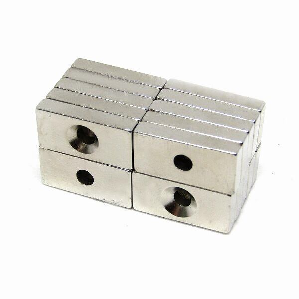 強力磁石 ネオジウム 20×10×4mm 20個 角型 皿穴 ・1007